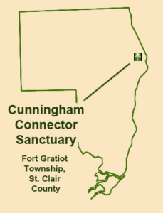 The Cunningham Connector Sanctuary shown in yellow. Purchase of the Cunningham Connector Sanctuary was made possible by funding provided by a long-awaited grant from the North American Wetlands Conservation Council which came through just in time. Ultimately, we thank Kali Rush of the Great Lakes/Atlantic Regional Office of Ducks Unlimited in Dexter, Michigan for this grant opportunity and her continued work on behalf of the TLC.